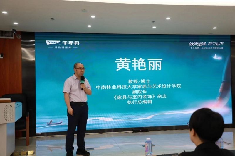 活動現場,千年舟借文化之力展現出獨特的品牌魅力,使與會嘉賓猶如置身于一場沉浸式的中華文化之旅,感受到空間脈絡、產品情感等多元維度的文化內涵表達。在全場熱切的期待中,中南林業科技大學 家居與藝術設計學院副院長黃艷麗教授詳盡揭曉了本次大賽的主題定位、比賽規則、參賽要求、獎項設置以及報名流程等重要信息。在大賽權威背景解讀環節,大賽承辦方之一的《家具與室內裝飾》期刊以其專業權威性和影響力得到黃教授的高度評價。他指出,該雜志是我國首本專注家具設計與制造學科的全國中文核心期刊,同時關注家居產業學術進步和校企合作服務,吸引了一大批專業人才積極參與,有效推動了行業、學術界和各高校之間的設計學術交流與研究成果的共享轉化。