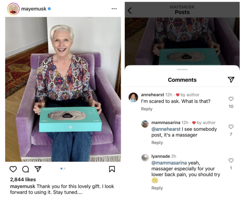 圖注:梅耶·馬斯克在Instagram上分享SKG按摩儀,引發網友熱烈討論