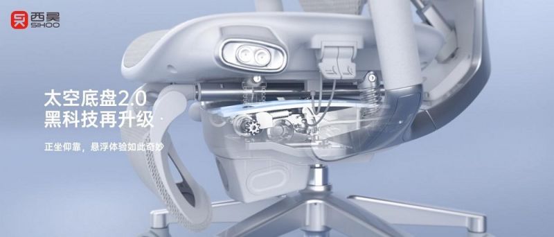 作為西昊的關鍵技術成果之一,西昊在原有S300產品太空底盤技術上進一步升級,太空底盤2.0技術采用了和直升機螺旋槳同樣材質的玻纖彈片。在前傾辦公模式下,搭載太空底盤2.0的西昊T6的座墊和靠背能隨身體前傾角度變化而聯動調整,使大腿和背部保持約90度的理想夾角,并持續提供均衡的壓力分布。