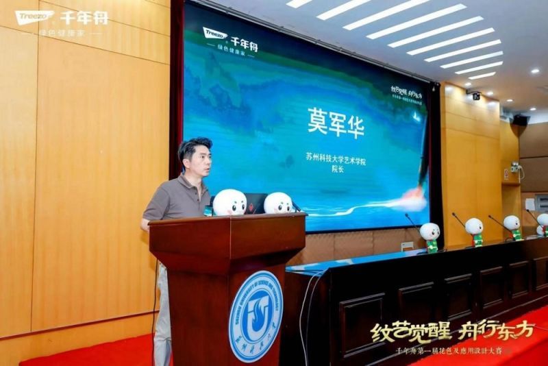 千年舟集團代表在發言中指出,蘇州科技大學藝術學院為設計精英的搖籃,擁有獨特教育理念和卓越成就。她表示,千年舟集團始終堅守綠色發展的理念,致力于將深厚的華夏文化融入產品的每一個細節之中,讓東方美學的韻味在板材上得以完美呈現。千年舟舉辦“花色及應用設計大賽”,正式期望以產學研合作的方式,與蘇州科技大學等優秀高校攜手,共同傳承與踐行中華傳統文化的精髓,以現代審美喚醒古老的文化基因,讓東方美學的獨特魅力真正融入人們的日常生活,共同創造更加美好的未來。