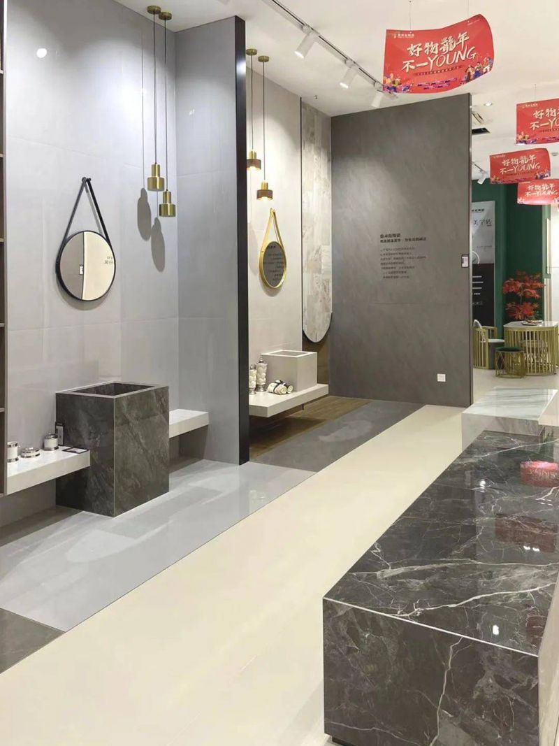 通透寬敞的布局,摒除掉多余的修飾,讓視覺更聚焦于產品本身。一眼望去,每一塊瓷磚的美都可盡收眼底。