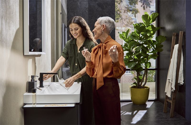 Tecturis圖睿偲E系列也為用戶提供個(gè)性化的選擇。把手擁有側(cè)面、頂部等多種款式,暗裝墻出或臺(tái)上龍頭的不同安裝方式可滿足用戶各種裝修需求。此外圖睿偲E系列還提供鍍鉻、摩登黑、前衛(wèi)白以及博雅金四種FinishPlus特殊表面飾面,搭配用戶不同審美需求,營(yíng)造彰顯個(gè)人品味的個(gè)性空間。