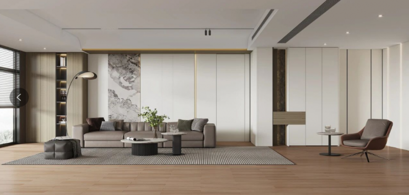 實木地板的應用不僅僅是為了滿足實用性,更是一種對傳統(tǒng)美學的現(xiàn)代詮釋。而為了發(fā)揮其更好地裝飾作用,地板的鋪設方式同樣十分重要。平鋪、人字拼、魚骨拼等不同的鋪設方式能夠呈現(xiàn)出不同的視覺效果,進一步豐富空間層次。平鋪方式簡潔大方,適合現(xiàn)代簡約的新中式風格;人字拼和魚骨拼方式則更加復雜多變,能夠為空間增添一份動感和立體感,展現(xiàn)出傳統(tǒng)中式的精致與匠心。