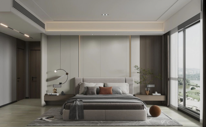 我們不難發(fā)現(xiàn)中式設計常常運用對稱、簡潔、自然的元素來營造出一種中式文化的氛圍,如傳統(tǒng)的屏風、窗欞、字畫、古玩等。同時,中式設計也注重色彩的選擇和搭配,以自然色、暖色調為主,如米白、淺灰、淺棕等,營造出一種溫馨、舒適的家居氛圍。