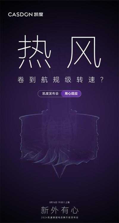 近日,新廚電代表品牌——凱度電器在官方自媒體發布了品牌升級發布會預熱海報,不僅透露五大新品的概念亮點,也官宣將于8月16日在上海舉辦“新外有心”·2024凱度新廚電品牌升級發布會,強勢吸引用戶關注,制造了一波充滿懸念的行業話題。