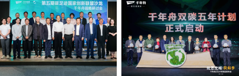 纖纖不絕林薄成,涓涓不止江河生。為了持續推動綠色技術的迭代升級,千年舟在2023年相繼成立了低碳技術研究所,并授牌成為碳足跡國家創新聯盟理事單位。通過加強與學術界和產業界的合作,實現了科學研究和政、產、學、研之間的有機結合,進一步推動了企業的綠色升級。同時,《雙碳五年計劃》的發布,更是為千年舟的綠色發展指明了方向,通過綠色供應鏈體系,為市場帶來了更加環保、低碳的家居產品。