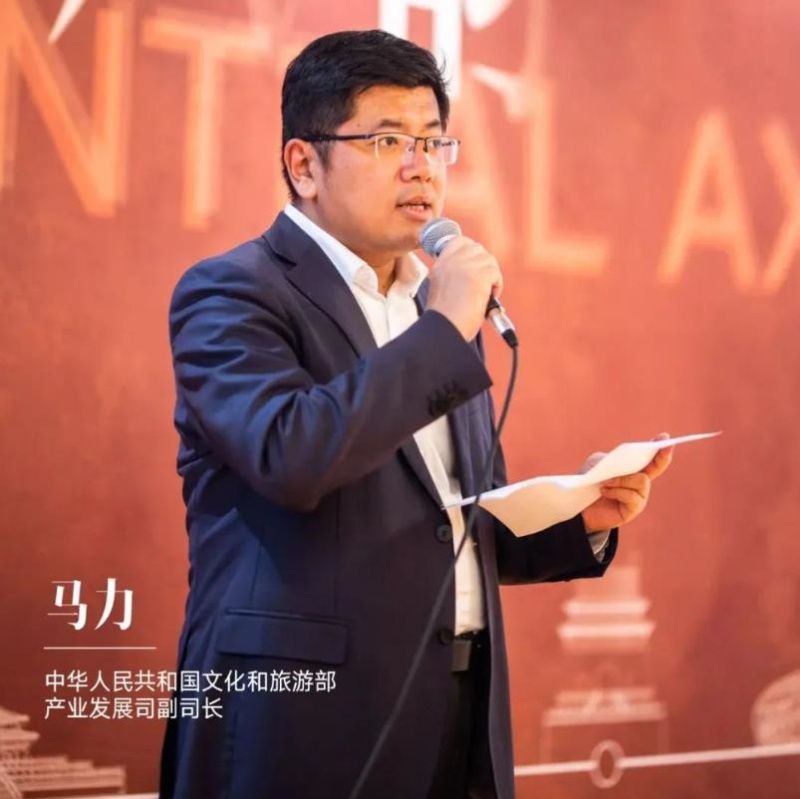此次展覽得到了中華人民共和國文化和旅游部的大力支持,文旅部產(chǎn)業(yè)發(fā)展司副司長馬力、產(chǎn)業(yè)促進(jìn)處處長劉戀蒞臨現(xiàn)場。馬力副司長在展覽開幕儀式上致辭,他表示:“?展覽不僅是對北京中軸線深厚豐富的歷史文化、?宏偉壯麗的建筑形態(tài)、?多彩多姿的非物質(zhì)文化遺產(chǎn)的展示,?也是北京中軸線走出去的全新一步。?我們希望在時尚之都、藝術(shù)之都引發(fā)討論熱度,在時裝周之際,以古鑒今,表達(dá)中國人對與時尚、對于美的更深層次的理解。”