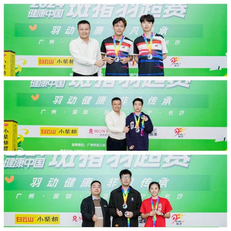 廣州趣元?jiǎng)?chuàng)數(shù)字科技有限公司總經(jīng)理 李勁先生和廣州白云山醫(yī)藥銷售有限公司 粵中OTC經(jīng)理 錢濤先生分別為第4-6名的單項(xiàng)賽混雙“灝鳴體育”隊(duì)、“兒童照片”隊(duì)、“堅(jiān)決不掉隊(duì)2”隊(duì),單項(xiàng)賽男雙“北師大珠海”隊(duì)、“湊數(shù)隊(duì)”隊(duì)、“寧凡羽毛球”隊(duì)頒獎(jiǎng)。