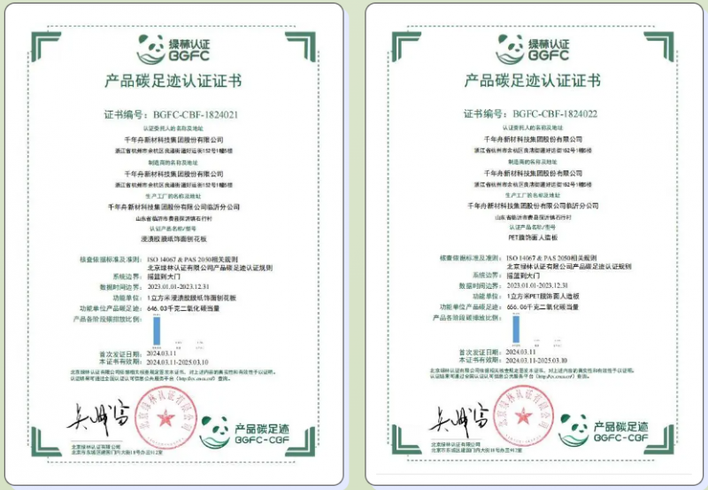 經專業機構構建模型并核算、指導,千年舟集團順利完成碳排放雙控報告并取得產品碳足跡證書。