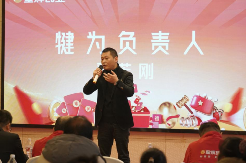 隨后,星輝瓦業犍為專賣店總經理嚴若剛上臺發表致辭,嚴經理首先對到場的各位來賓表示由衷的感謝,其次說到,犍為專賣店作為跟隨星輝瓦業總部共同發展多年的老商,始終與公司戰略保持一致,非常期待犍為專賣店借助戰略轉型的新契機,發揮屋面整裝品質交付優勢,為犍為及周邊父老鄉親提供更高品質的屋面一站式解決服務。