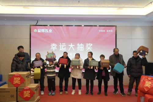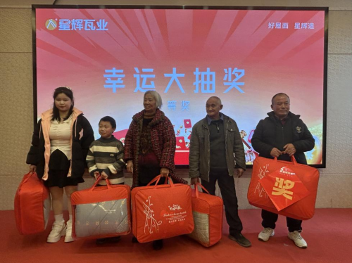 各位領導致辭結束后,終于迎來了激動人心的抽獎環節,為回饋廣大用戶,星輝瓦業犍為專賣店在總部的支持下,凡是在活動期間簽單,均享“下單豪禮享不?!薄ⅰ绑@喜折扣讓利”等一系列活動政策。一輪又一輪的抽獎,一個個幸運兒依次產生,精美獎品被陸續抽出。
