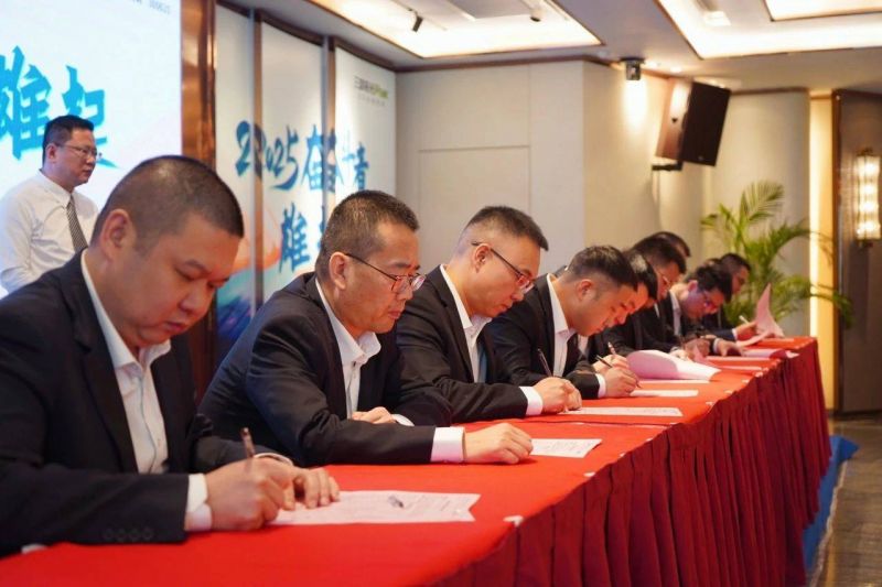 2025年,布局“抓業(yè)績、升價值、促管理、降成本”四大核心經(jīng)營戰(zhàn)略,不僅為新的一年奠定了堅實的戰(zhàn)略基礎,更為三雄極光在未來的發(fā)展中注入了強大的動力。會議高潮,各部門負責人簽訂2025 年目標責任承諾書,共做雄起的2025奮斗者!