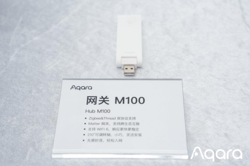 網關M100支持Zigbee與Thread雙協議、Wi-Fi 6,具備高效天線和Aqara方舟技術,穩定性強。