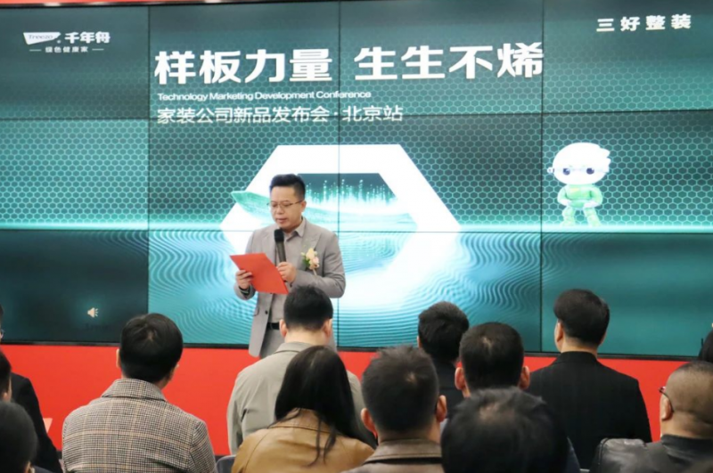發布會伊始,北京三好整裝總裁胡曉進先生發表了熱情洋溢的致辭。胡總表示,非常榮幸與千年舟攜手開啟全新合作旅程,并代表公司向各位來賓、媒體朋友和合作伙伴表示誠摯歡迎和感謝。三好整裝秉承“一次裝修,一生朋友”理念,追求創新與客戶滿意;千年舟作為行業領軍品牌,以卓越質量和環保理念贏得信賴。此次合作是雙方共同推動行業進步、提升客戶體驗的重要里程碑,將為消費者帶來更優質、環保、時尚的家居解決方案。雙方強強聯合,必將樹立行業新標桿,創造更大價值,期待未來合作之路更加輝煌。