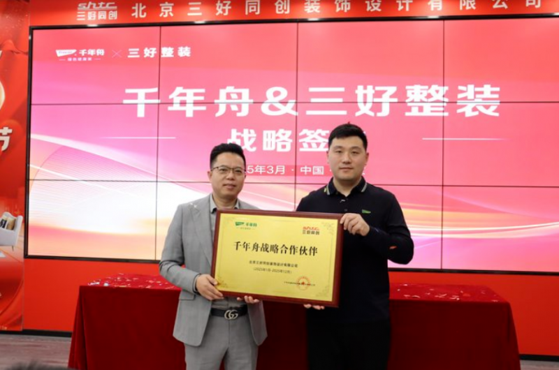 2025年3月12日,家裝行業迎來一場意義非凡的盛會,千年舟集團與北京三好整裝的深度戰略合作成為眾人矚目的焦點。在這場以新品發布為契機的合作中,千年舟2025年飾面新花色正式走進北京三好整裝,為雙方深度合作注入全新活力,更為健康家居的發展開辟出一條嶄新的航道。