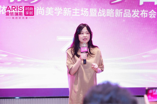 在新品發布環節,愛依瑞斯產品設計中心總監孫海燕詳細介紹了新品的開發理念和設計亮點。她表示,愛依瑞斯的新品聚焦時尚真皮家具,并與國民IP黃逗菌合作,推出了充滿趣味設計的聯名產品。這些產品不僅在外觀上獨具匠心,還通過材質和功能的創新,為消費者帶來了全新的家居體驗。