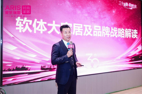 愛依瑞斯營銷副總裁陳力在發布會上詳細介紹了愛依瑞斯的軟體大家居的戰略。他表示,愛依瑞斯的使命是成就健康美好的家居生活,成為全球軟體家具領導品牌。為實現這一目標,愛依瑞斯從單品拓展到多品牌、多系列產品,最終形成了軟體大家居的品牌戰略。