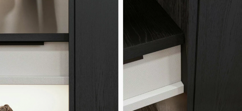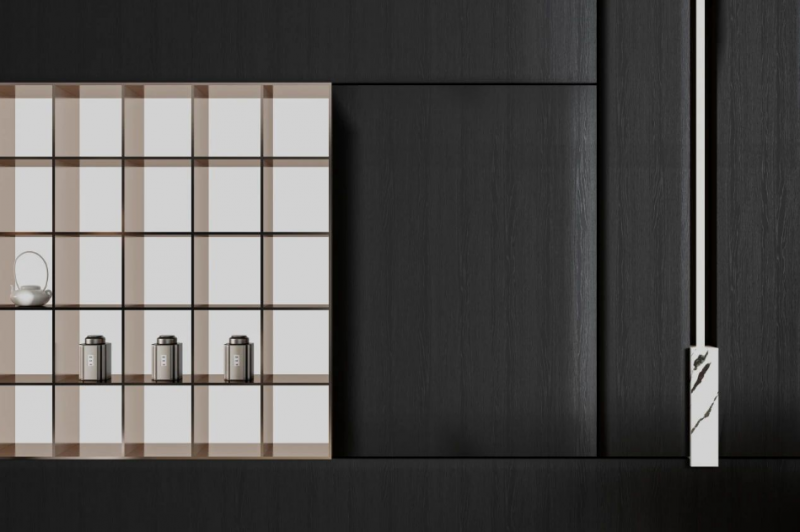 而為了達到天然橡木的觸感效果,設計師在鋼板底層增加了顆粒質感。這種設計不僅提供了強烈的觸覺體驗,還使得每一次觸摸都成為一次愉悅的享受。即使在頻繁接觸的情況下,這種特殊處理的鋼板都能保持其細膩的觸感,不會因時間的流逝而變得粗糙或失去質感。此外,多光澤度鍍鉻技術的運用,在視覺上也為家居空間增添了一份低調而奢華的氣息,使得整個空間在光線的照射下更加層次分明,充滿了現代感與藝術感。