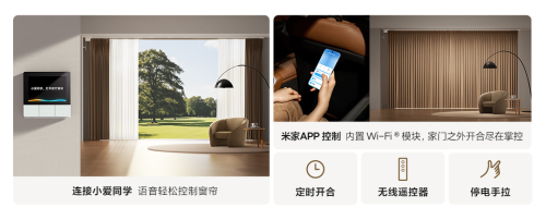 依托小米AIoT生態鏈的技術優勢,米家隱藏式智能窗簾提供多元化的智能控制方式,帶來更便捷的居家體驗。用戶可通過 “小愛同學” 語音操控一句話開啟或關閉窗簾,也能借助 米家APP 遠程管理,隨時隨地掌控窗簾狀態。為滿足不同用戶的使用習慣,產品特別配備實體遙控器,讓老人和兒童也能輕松操作。此外,還支持 自定義定時功能,可根據個人作息自動調節窗簾開合,減少日常重復操作。值得一提的是,其人性化設計讓窗簾在斷電時仍可通過手拉方式順暢開合,確保使用無憂。