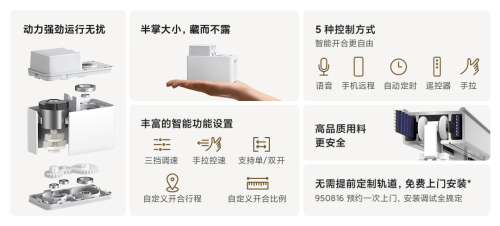 窗簾電機采用多重精密設計,運行噪音低于30分貝,即使夜間開合也不會干擾家人休息。小而強大即使是笨重的絨布窗簾也能絲滑平穩開合。此外,整機通過安全測試,可靠性測試多達23項,電機壽命長13年。