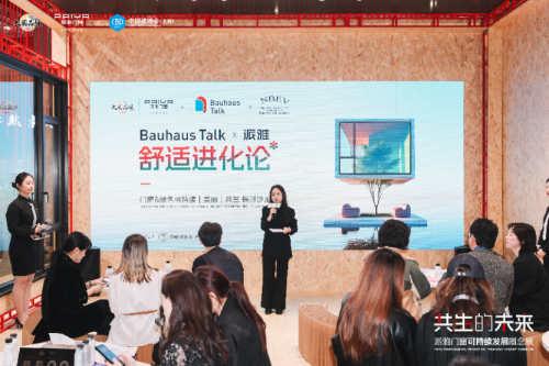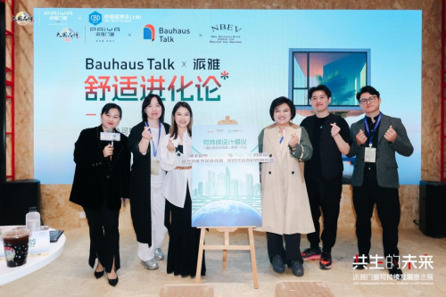 展會首日,派雅門窗攜手更新設計創始人、中央美院課程講師周游;ImSD未完成空間設計創始人、設計總監,德國包豪斯設計精英大師協會成員Filippo;大成至和(上海)創始人、德國包豪斯設計精英大師協會成員劉蓓;德國包豪斯大學代表、德國包豪斯設計精英大師協會秘書長馬山山;佛山設計聯合會執行秘書長林麗妮共同開展了“Bauhaus Talk X 派雅「舒適進化論」”設計師沙龍活動,共同解構綠色共生密碼,重構綠色未來人居,揭開了門窗行業生態化變革的序幕。