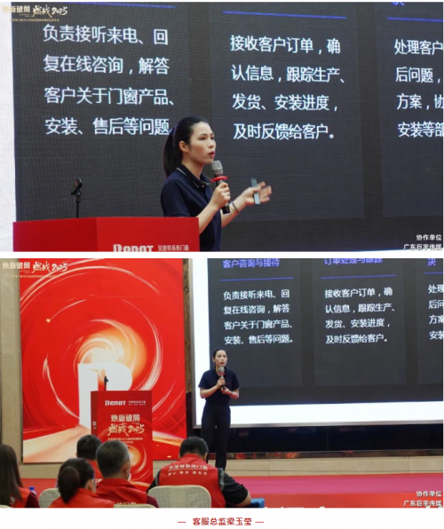 接下來是客服總監梁玉瑩,憑借豐富的客戶服務經驗,為大家講解門窗接單基本要素以及接單的注意事項。從下單前咨詢、下單操作,到售后跟進,每個環節都圍繞提升客戶體驗展開,涵蓋售后響應時間、問題解決機制、維護保障以及簡化的下單步驟,助力大家輕松享受優質服務。
