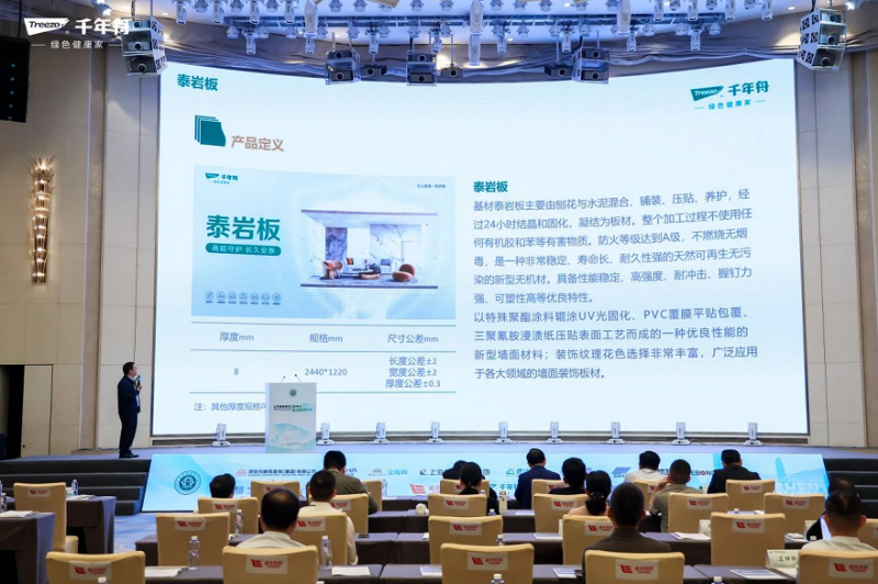 活動現場,千年舟還設置了專門的品牌展示區,吸引了眾多參會者駐足參觀。展示區內不僅陳設了千年舟的明星產品,如泰巖板、石墨烯黑金板、新型難燃OSB板等,還通過多媒體互動形式,全方位展現了千年舟的品牌實力、創新技術以及豐富的工程案例。