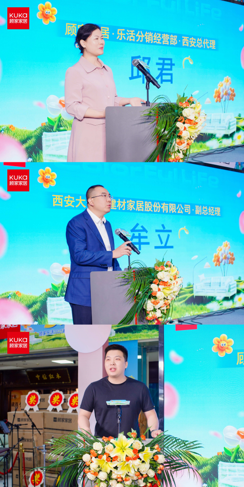 顧家樂活全國銷售負責人隋抒航、顧家樂活西安代理商邱君,和西安大明宮建材家居股份有限公司相關領導出席活動。