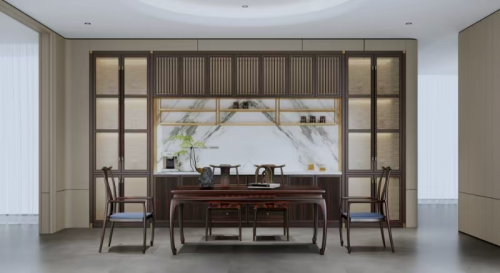 承襲東方建筑形制精髓,以現代工藝解構傳統榫卯智慧。系列產品采用流線型改良設計,將明清家具的方正骨架轉化為富有韻律的曲線語言,精選愛里古夷蘇木為主材,在朱砂紅與黛青色的撞色演繹中,重現唐宋美學的大氣雍容。將非遺鏨刻銅飾與景泰藍工藝嵌入產品,于細節處訴說東方故事的現代表達。