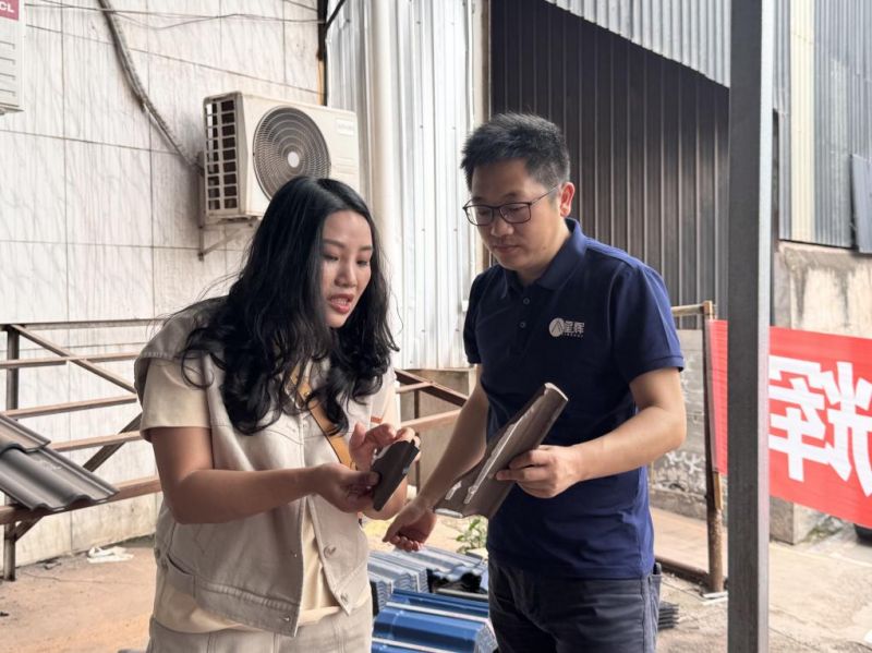 最后,經銷商們來到樣品測試區和成品倉庫,在工作人員的現場演示下,大家紛紛對產品的質量和外觀設計給予高度評價,并表示,未來將繼續加強與星輝瓦業的合作力度,同心同力做大做強。