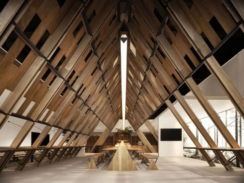 不同于往屆地暖實(shí)木地板專家與領(lǐng)導(dǎo)者的經(jīng)典形象,本次天格展位由設(shè)計大咖謝英凱老師操刀,將木材之美與空間表達(dá)完美糅合:以“天”、“木”、“人”為設(shè)計內(nèi)核打造整體展位,一大一小兩三角構(gòu)成建筑主體,產(chǎn)品以極致藝術(shù)手法呈現(xiàn)。此外,整個展位框架都以榫卯工藝的木地板巧妙拼接,實(shí)現(xiàn)可重復(fù)拆卸與使用,進(jìn)一步傳遞了天格環(huán)保與自然的和諧理念。