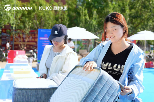 依托萬華化學(xué)在聚氨酯材料研發(fā)與顧家家居在人體工程學(xué)領(lǐng)域的雙重優(yōu)勢,“未來睡眠進(jìn)化論”舒適睡眠創(chuàng)想比賽將構(gòu)建"認(rèn)知-體驗-創(chuàng)造"的完整創(chuàng)新鏈條?;顒蝇F(xiàn)場特別打造沉浸式"材料空間",通過有趣有“材”的互動體驗,讓同學(xué)直觀了解記憶綿材料“慢彈釋壓”、“軟硬可調(diào)”等特性,精準(zhǔn)破解當(dāng)代大學(xué)生的睡眠痛點。同時,現(xiàn)場設(shè)置“睡眠空間”,同學(xué)們可切身感受不同密度、厚度的記憶綿床墊帶來的獨特睡感,理解材料對睡眠質(zhì)量的重要價值。