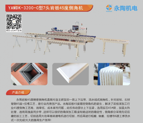 馬總宜永陶機電擁有經驗豐富的精英團隊,具備行業一流機械研發能力比如在前后雙刀切割技術通過預切割分散應力,使切割巖板產品降低崩邊率90%以上,尤其是“巖板45度精密倒角設備”獲得了巖板先進裝備榮譽。