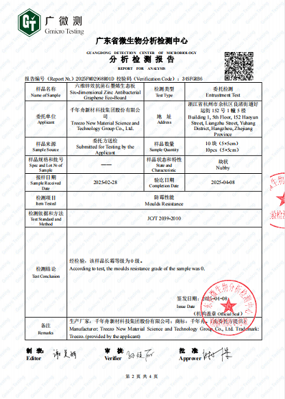 鋅效抗菌石墨烯系列產(chǎn)品在紙張浸膠過程添加專用防霉材料,同霉菌中的蛋白質(zhì)反應(yīng),抑制其生長,飾面之后的板材擁有一層強(qiáng)力的防霉保護(hù)層,成品板材達(dá)最高等級(jí)0級(jí)防霉,保護(hù)家居美觀與耐用性、同時(shí)保障家人健康。