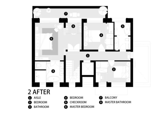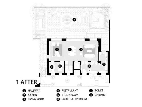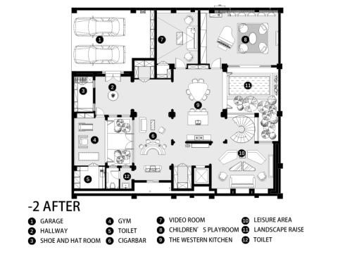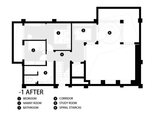 改造后: 我們設(shè)計(jì)師通過空間的規(guī)劃與巧妙布局,在自然與人工之間尋找平衡。在進(jìn)門玄關(guān)處設(shè)計(jì)隱藏式梯形鞋帽柜,并以兩扇黑白分明的雙色門強(qiáng)化室內(nèi)與室外的界限,將玄關(guān)與室內(nèi)分隔。在地下室大刀闊斧地拆除部分墻體改為寬闊的落地窗。為房子量身定制排水方案,增設(shè)隔潮墻,讓地下空間免受陰暗潮濕的困擾。設(shè)計(jì)鋼板與實(shí)木混合的旋轉(zhuǎn)樓梯。新增霧霾藍(lán)百葉窗,在地下室模擬自然光的裝置藝術(shù)。全屋的軟裝陳列不會過度刻意,傳遞出祥和悠閑的生活方式。