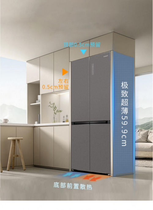 嵌入式冰箱的核心痛點是“機身凸出、留縫積灰、散熱不良”,創維超薄平嵌冰箱506通過三大設計突破實現“真?平嵌自由”: