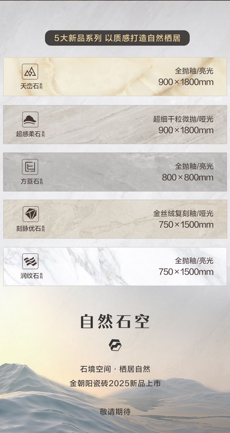 【自然石空】金朝陽瓷磚2025新品即將上市,新工藝新質感新花色,5大趨勢系列馬上閃亮登場