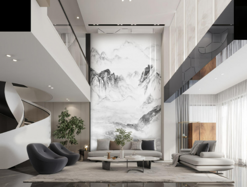 簡一瓷磚雖以大理石紋理聞名,但其新中式系列同樣表現(xiàn)出色。通過細(xì)膩的紋理控制與低飽和色調(diào)搭配,成功演繹出極具深意的東方哲學(xué),適合偏好極簡中式風(fēng)格的家庭。