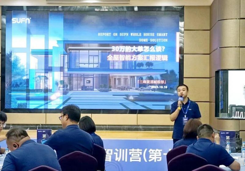 三峰照明賦能部經(jīng)理鄭琪琨、智能部工程師周立華,針對終端團隊關(guān)注的“大單攻堅”帶來專題授課。課程以真實案例切入,拆解大單談判全流程,剖析需求挖掘、價值構(gòu)建、異議處理、促成策略等關(guān)鍵節(jié)點方法論;同時圍繞全屋智能方案匯報,給出“服務(wù)體系—產(chǎn)品價值—設(shè)計思路—落地保障”四步框架,幫助學(xué)員建立高效方案溝通路徑。
