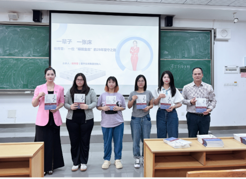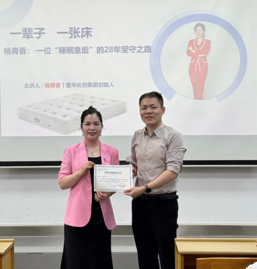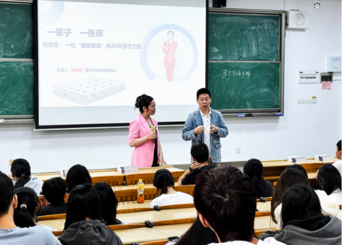 接著,她放慢語速:如今,富華名創公司已擁有“億吻”“湯部尚書”“席夢思黑金”“青竺心舍”等板塊,遠紅外、負氧離子、光波能量保健等 52 項專利被縫進同一款產品。她告訴同學們,企業做大后仍要“把社會責任縫進面料”——給山區小學捐床墊、為養老院換床品、用環保膠水減少 VOC 排放,“當世界因你而多一夜好眠,品牌自然就醒了?!?/span>