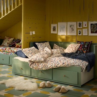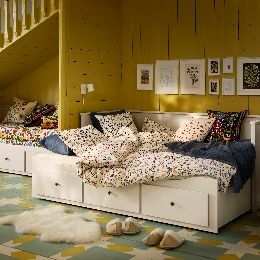 臥室的陳設以及儲物空間的安排也直接影響睡眠質量。HEMNES 漢尼斯坐臥兩用床,既能打造一個溫馨角落,也能用來招待客人,靈活適應不同需求,幫助打造出更整潔平靜、井然有序的臥室,讓人們睡得更香。