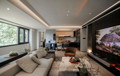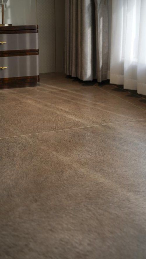 浙江金華麗景灣1000㎡大宅是現(xiàn)代美學(xué)與新中式庭院相結(jié)合的典范。項(xiàng)目以現(xiàn)代美學(xué)與實(shí)用主義為核心,巧妙融合傳統(tǒng)東方韻味與摩登生活語言。客廳地面鋪陳的MC98603銀灰色馬毛瓷磚,其中性色調(diào)與細(xì)膩質(zhì)感,既奠定了現(xiàn)代空間的簡潔基調(diào),其自然肌理又隱隱呼應(yīng)著傳統(tǒng)東方美學(xué)中對自然材質(zhì)的崇尚。在開闊的一體化布局中,馬毛磚以其溫潤的觸感與視覺層次,為極簡的空間注入了人文溫度。