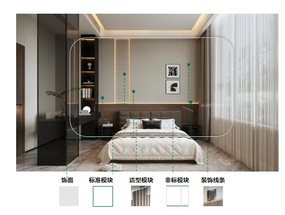 花色、肌理、墻板尺寸、造型、構件自由變換,可針對需求,進行不同空間、不同風格的個性化定制,有助客戶高效決策。