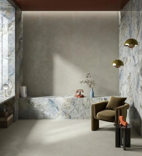 L&D強調“生活設計”理念,產品線涵蓋大規格巖板、柔光磚、啞光磚等,尤其擅長通過色彩、肌理與光影營造空間情緒。在施工性能上,L&D注重防滑、耐磨與抗污技術的平衡,適合現代簡約、侘寂風、輕奢等流行家居風格。