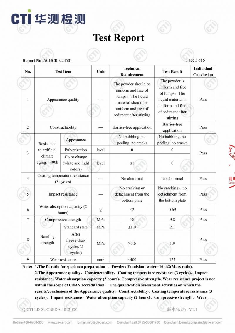 檢測項(xiàng)目 | Vanlei萬磊微水泥檢測結(jié)果 | 地暖系統(tǒng)要求 | 技術(shù)意義 |