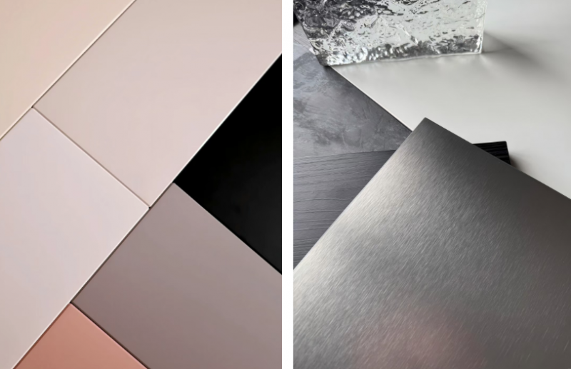 · 表面膜皮:包含膚感、高光、液態(tài)金屬、金屬拉絲、壓紋等多種樣式,可適配現(xiàn)代簡(jiǎn)約、輕奢等不同家居風(fēng)格,適用于各類定制家居制作。
