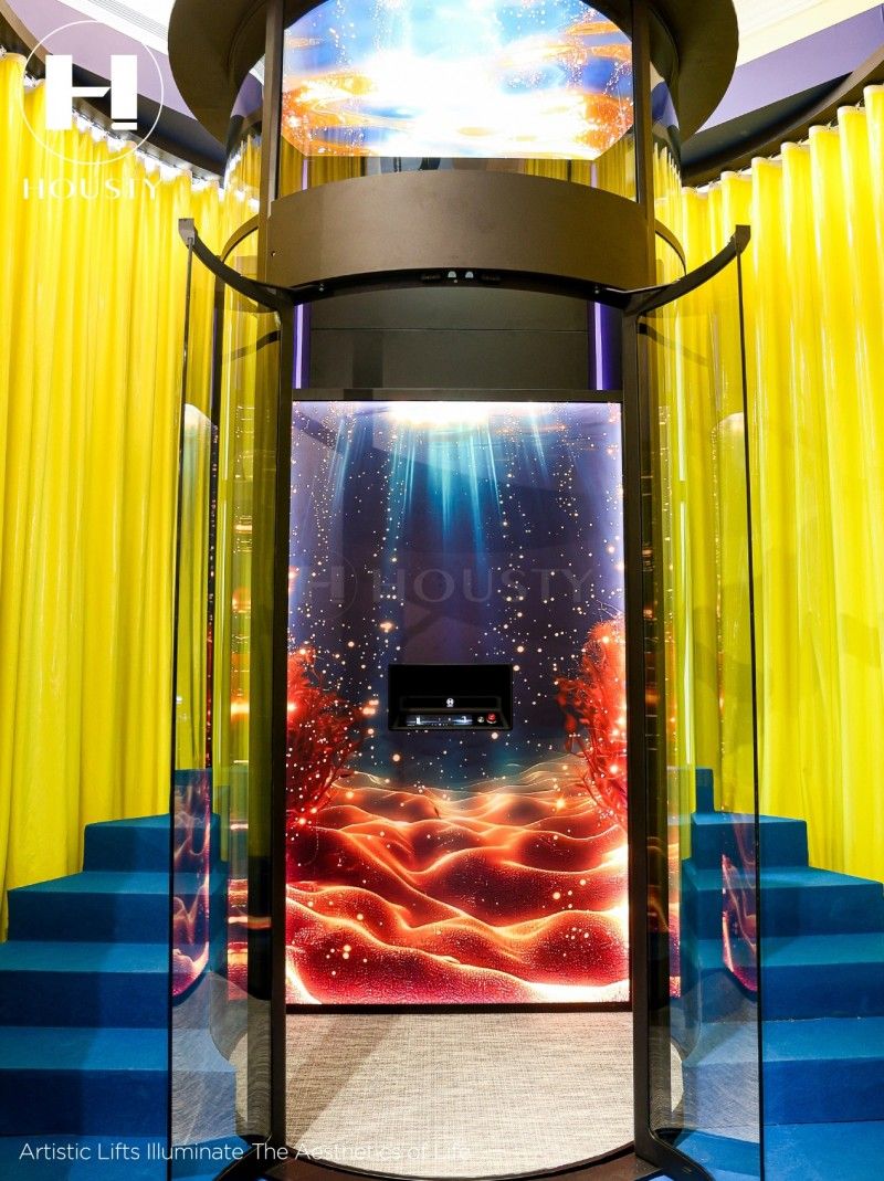 展區以獨特的空間敘事與創新產品構建出沉浸式體驗,流動的色彩、藝術化的視覺呈現與極具未來感的電梯產品,使其成為展館內備受矚目的焦點之一。不少觀眾表示,展出的電梯產品顛覆了其對別墅電梯的認知。