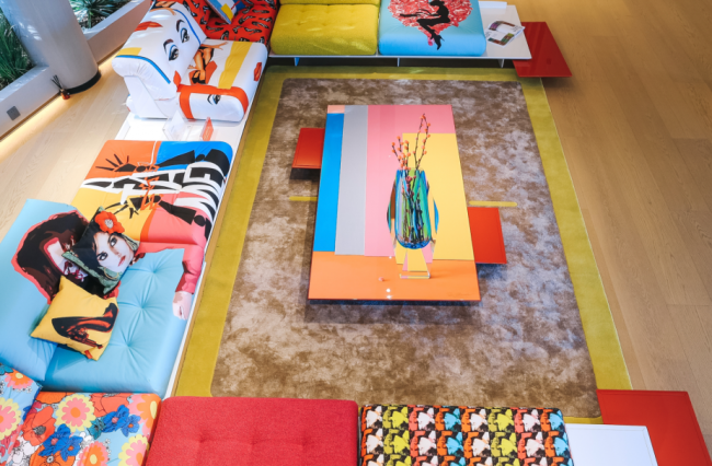作為品牌最具標(biāo)志性的設(shè)計(jì)之一,Mah Jong “麻將”沙發(fā)自1971年由德國(guó)設(shè)計(jì)大師 Hans Hopfer為羅奇堡創(chuàng)作以來(lái),便以可拆解、可組合、可疊加的結(jié)構(gòu)語(yǔ)言,徹底打破傳統(tǒng)客廳的固定布局,開(kāi)創(chuàng)了一種更具流動(dòng)性的空間表達(dá)。今年正值其誕生55周年,展覽通過(guò)多個(gè)空間單元,呈現(xiàn)這一經(jīng)典沙發(fā)在不同設(shè)計(jì)語(yǔ)境中的多重演繹。跨越半個(gè)多世紀(jì),Mah Jong 持續(xù)與來(lái)自時(shí)尚、藝術(shù)與設(shè)計(jì)領(lǐng)域的創(chuàng)作者及品牌展開(kāi)合作,在圖案、織物與場(chǎng)景表達(dá)的不斷煥新中,始終保持鮮活而開(kāi)放的生命力。
