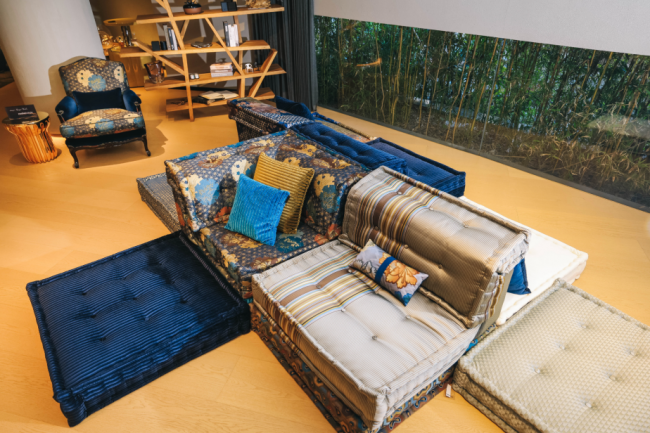 Mah Jong“麻將”沙發(fā) Shumyu 款與時(shí)尚大師 Kenzo Takada(高田賢三)的合作版本,從傳統(tǒng)和服織物中汲取靈感,將花卉、幾何圖案與多層次紋理融入面料設(shè)計(jì),在色彩交織中創(chuàng)造出細(xì)膩而豐沛的視覺(jué)韻律。全新織物為 Mah Jong 賦予鮮明的藝術(shù)氣質(zhì),使其能夠從容融入多元的生活場(chǎng)景。