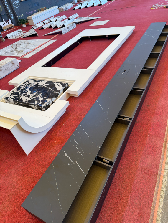 謝甫青說只做實實在在的定制加工,不做自有品牌銷售,可以覆蓋918到1.8m×3.2m全規(guī)格巖板加工,承接異形島臺、餐臺面、餐邊柜、樓梯踏步、廚房臺面復(fù)合蜂窩鋁等各類定制。